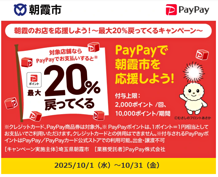 ※PayPayキャンペーンは 朝霞市内の対象店舗での対面決済のみ が対象です。