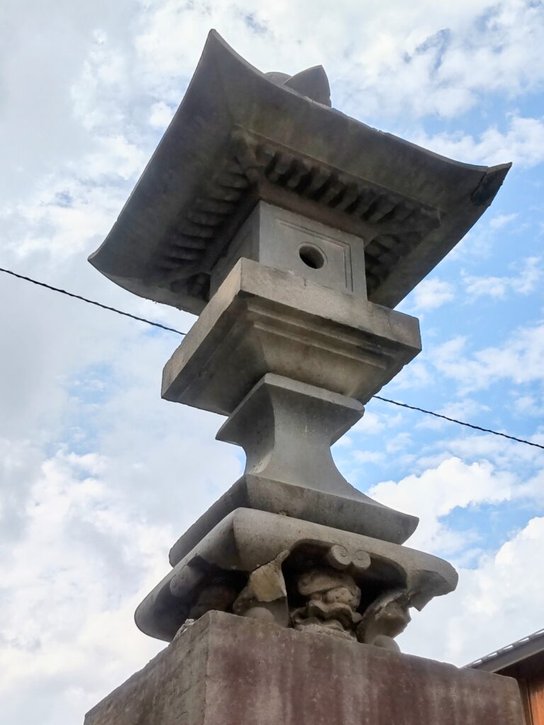 石灯籠からひょっこり狛犬?