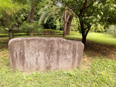 この公園に石が運ばれる時に、作業している人たちが掛け声をしながら運んでいた時の様子を伝えてきた模様。